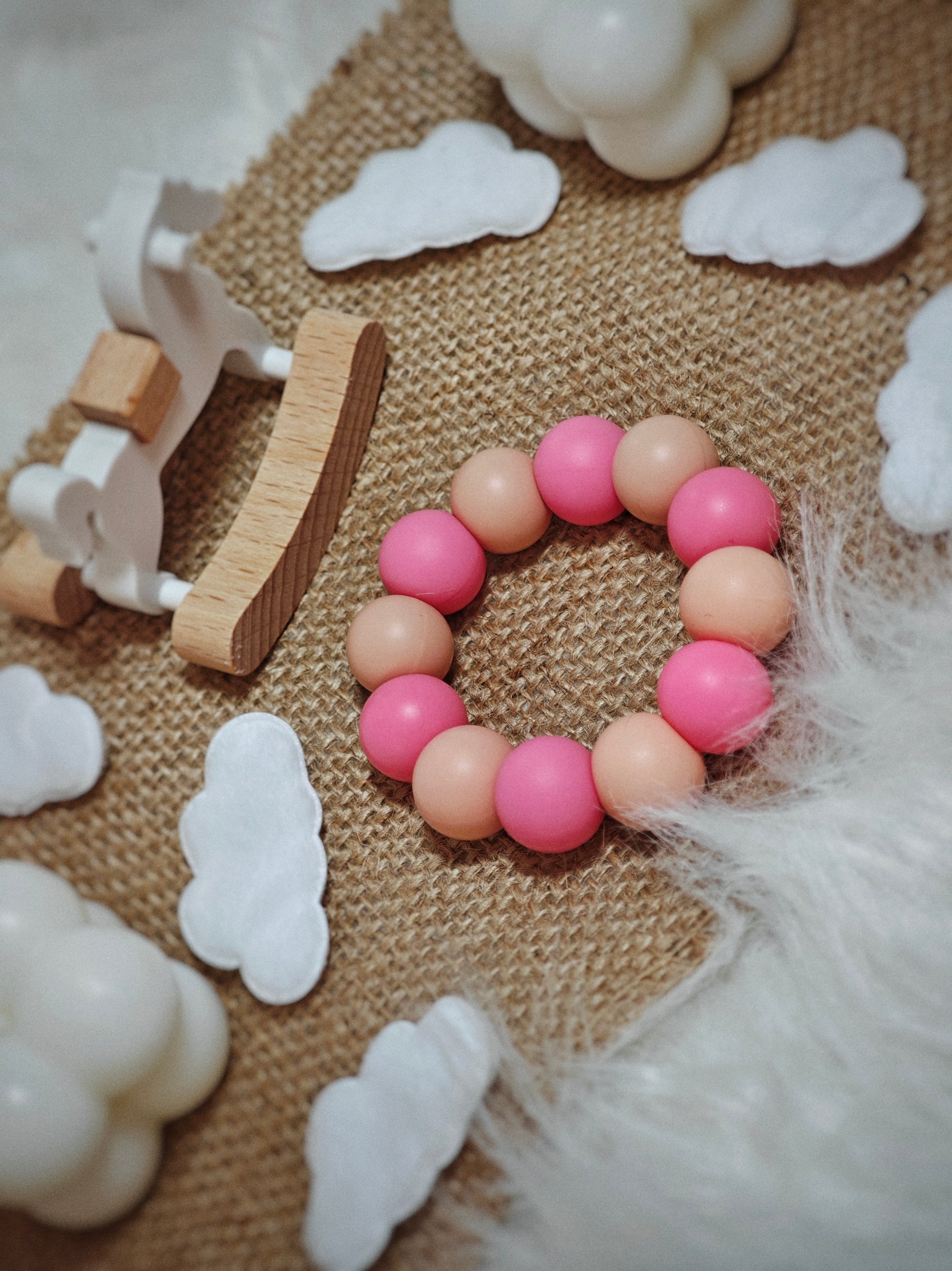 - Švelnus ir saldus lyg burnoje tirpstantis zefyras. Klasikinė braškių ir persikų spalvų gama sukuria nesenstančią, mielą išvaizdą, kuri asocijuojasi su jaukumu ir švelnumu.Tai paprastas, bet be galo žavus kramtukas, tapsiantis pirmuoju geriausiu draugu dygstant dantukams.