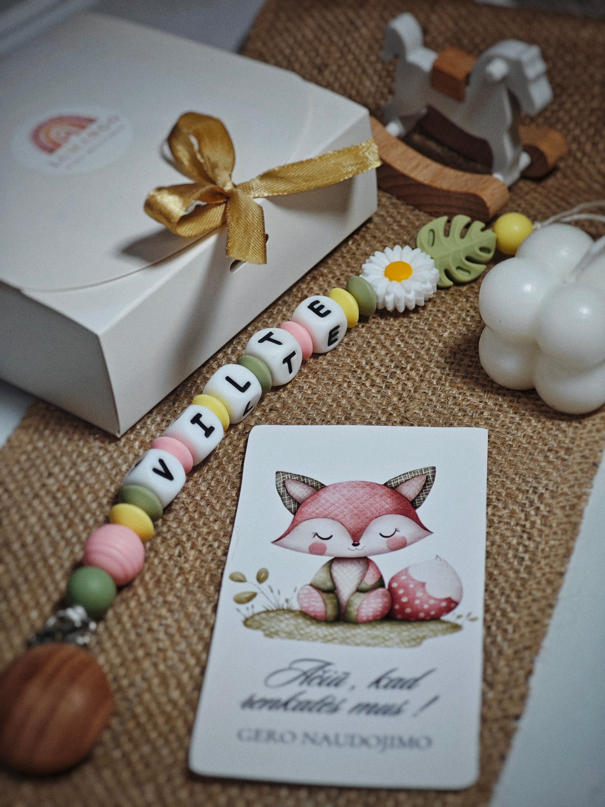 Rankų darbo personalizuotas vardinis čiulptuko laikiklis