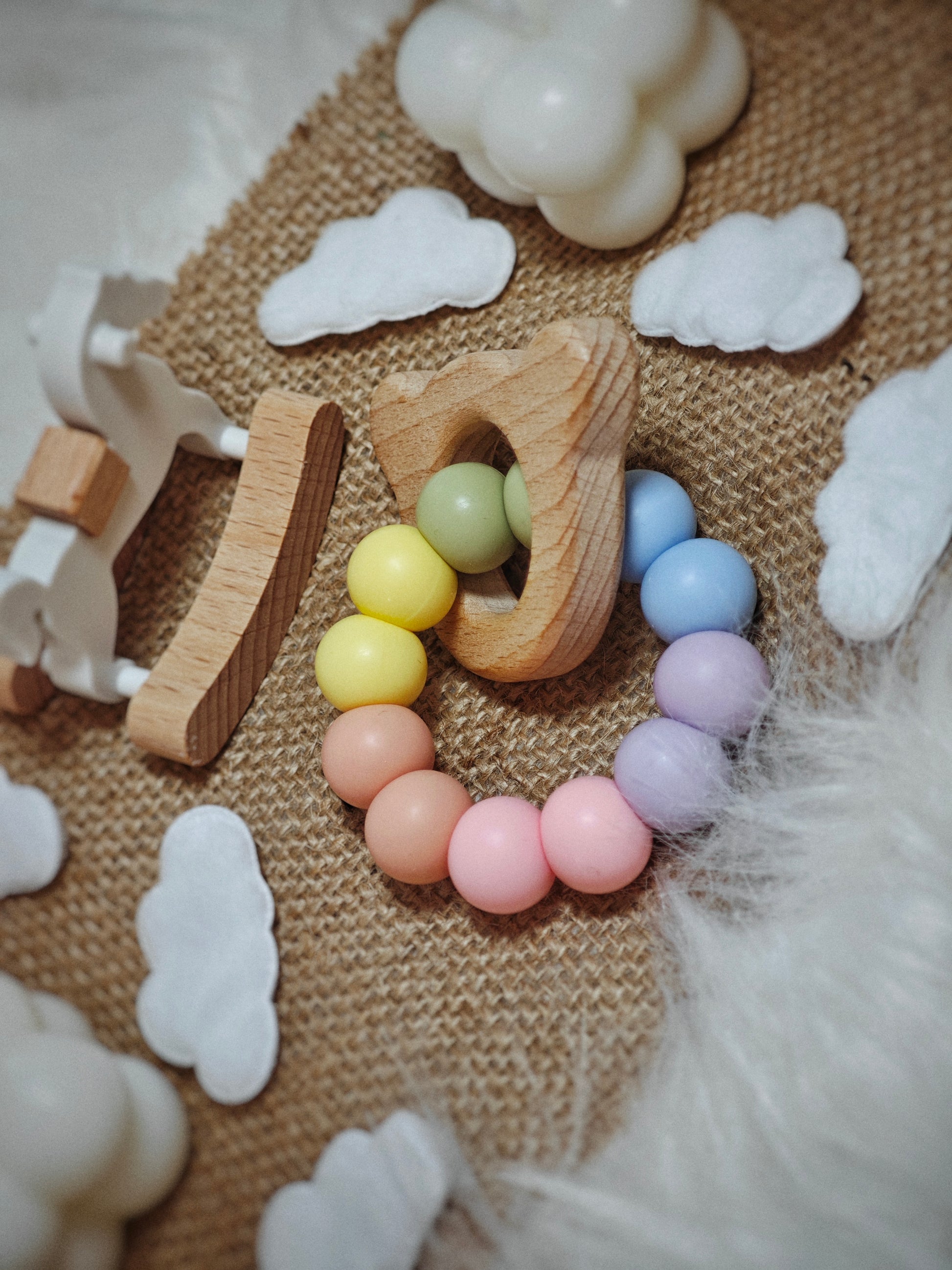 Pastelinių spalvų silikoninis kramtukas su meškučio formos detale. Spalvingi, bet subtilūs karoliukai skatina smalsumą ir ramina dantukų dygimo metu. Mielas aksesuaras kiekvienam kūdikiui.